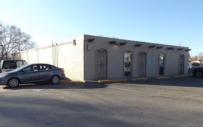 Gus and Hector Salamanca meet in the building just west of the intersection of William St. & Southern Ave. SE ("Better Call Saul," Season 3, episode 9, 'Fall'). Looking east. Patches of light through open doors are like representational skylights. In the scene immediately afterwards, real skylights are seen at Coronado Center!