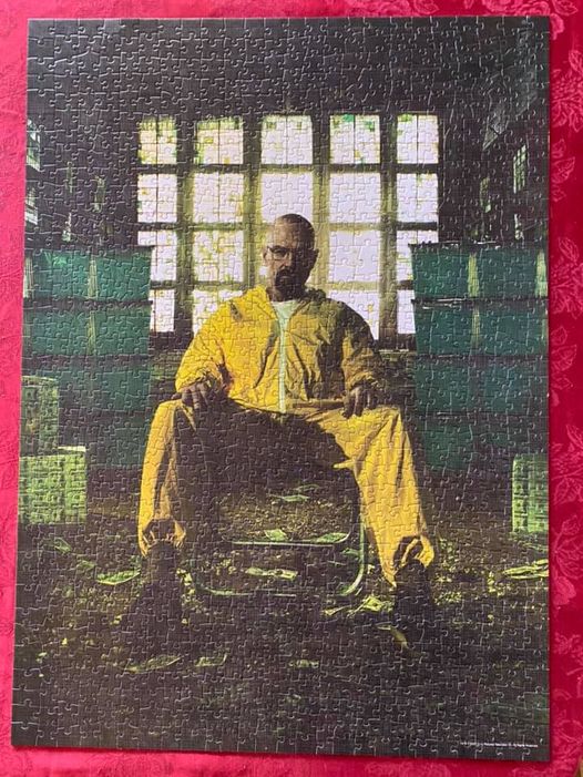 I assembled my Walter White jigsaw puzzle (purchased from Marq and Ed's Breaking Bad Store in Albuquerque). I had trouble finding the very last piece. Did it fall on the floor? Not obviously. On a hunch, I checked my dog’s stash of chew toys. Voila!